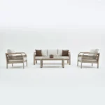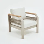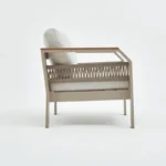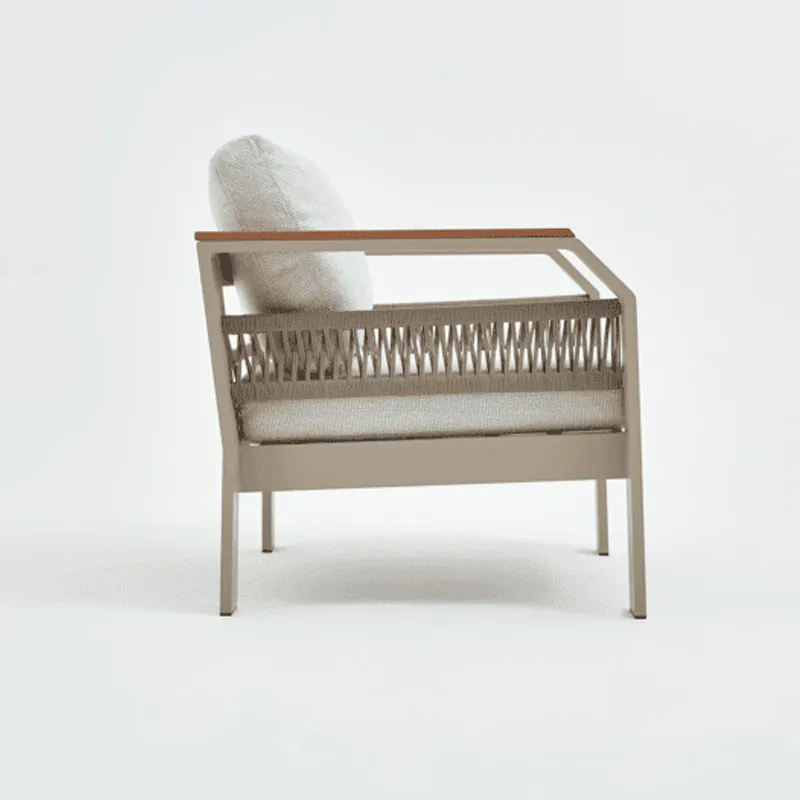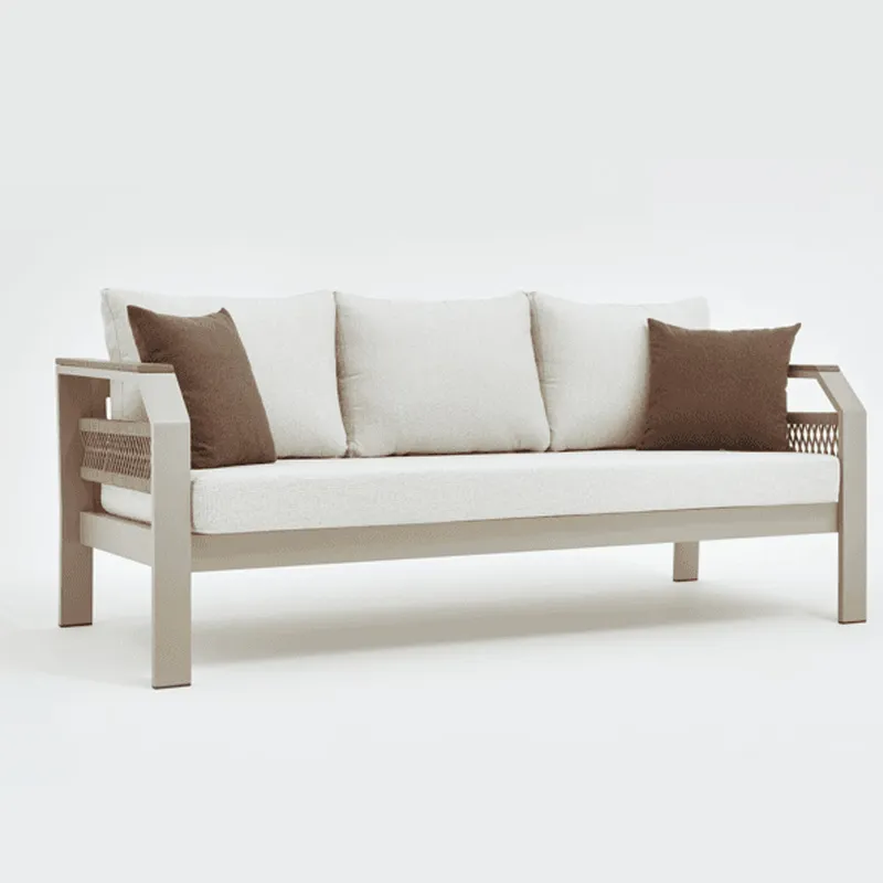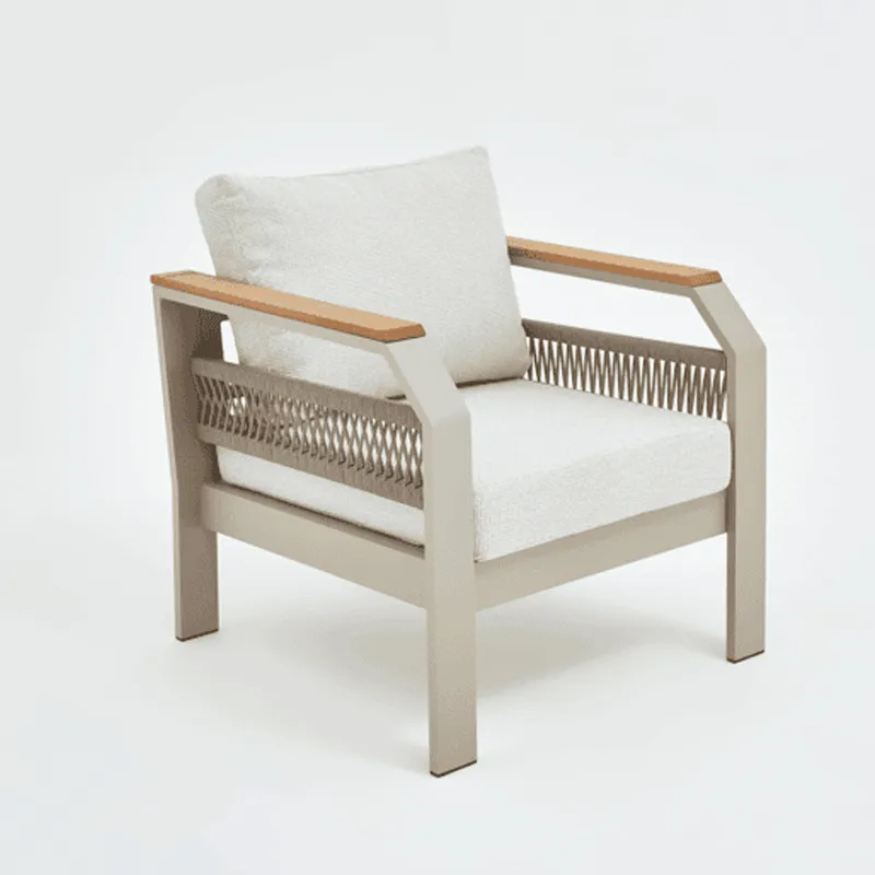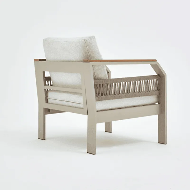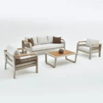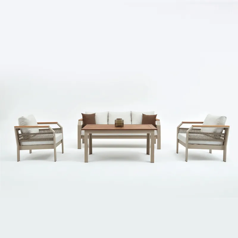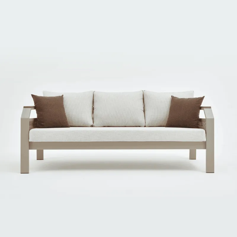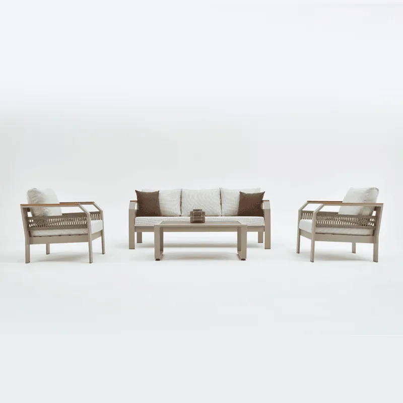 Our product is made entirely of aluminum. The fabrics are fade-resistant, water-repellent, and washable. Architectural-grade powder coating is used on our products, which also have UV resistance. The cushions are zippered, making cleaning easier. Due to these features, our products are ideal for use in gardens, balconies, and terraces, and their stylish design makes them equally suitable for indoor spaces.